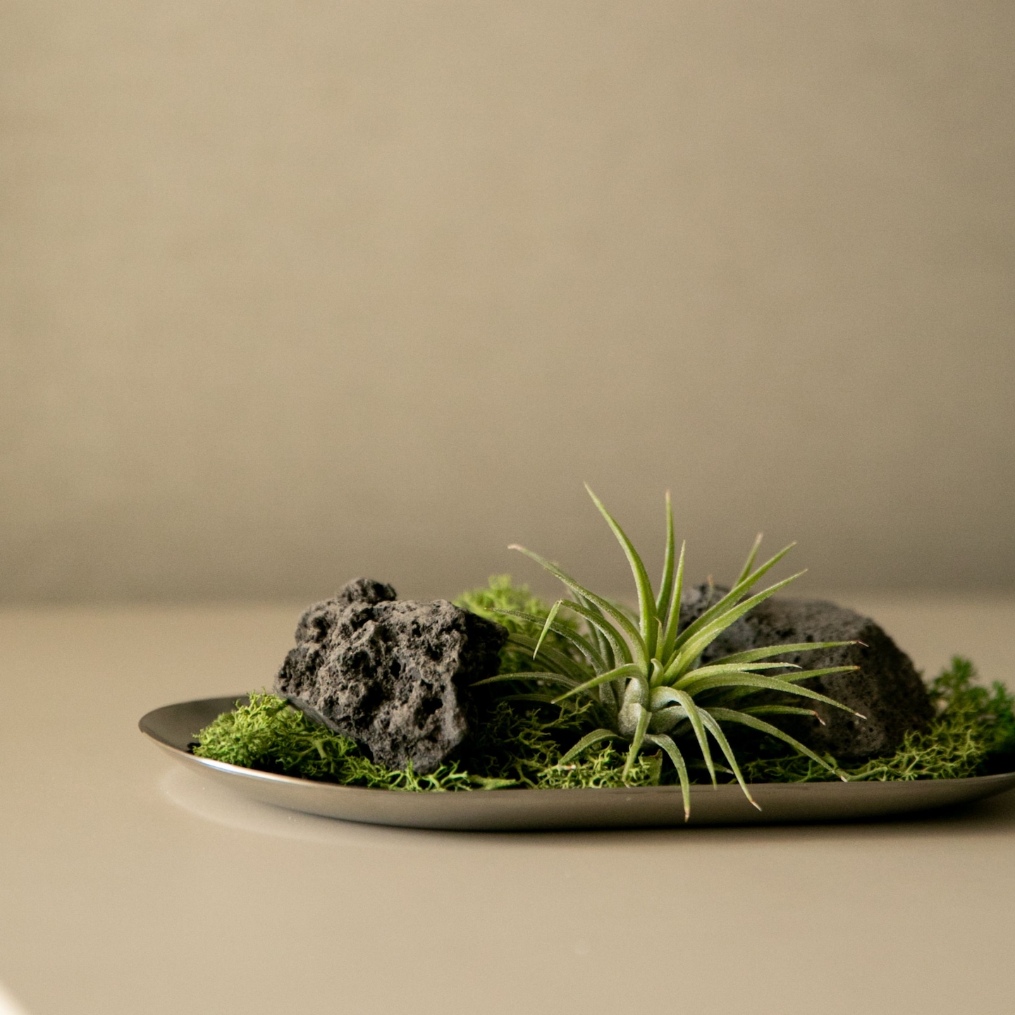 이오난사(틸란드시아)는 뿌리 없이도 공기 중의 수분과 영양분을 흡수하며 자라는 식물이라 흙이 필요하지 않아요. 그래서 거실, 침실, 주방, 심지어는 욕실 선반 위에도 쉽게 두고 관리할 수 있다는 점이 큰 장점이었습니다.